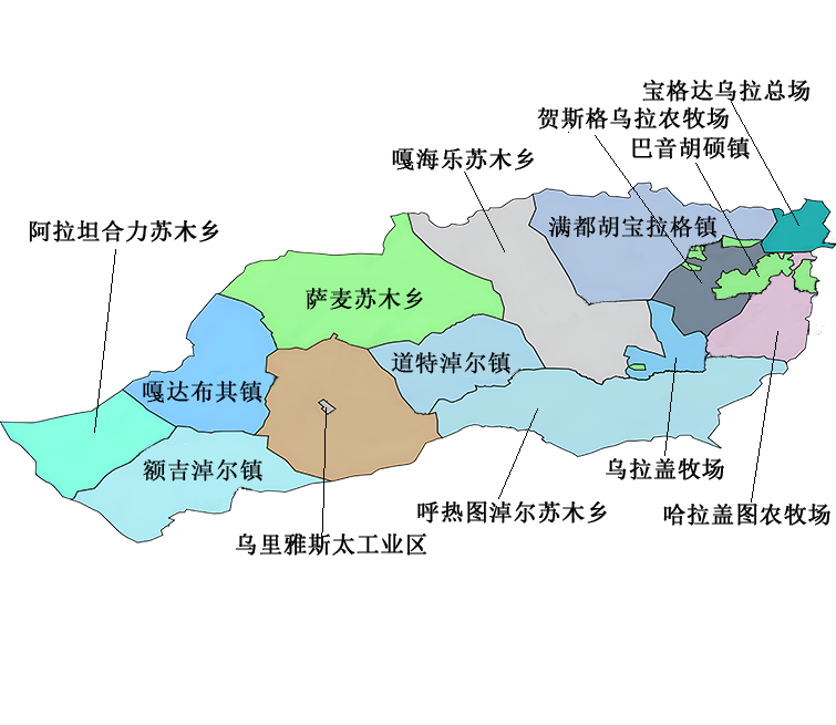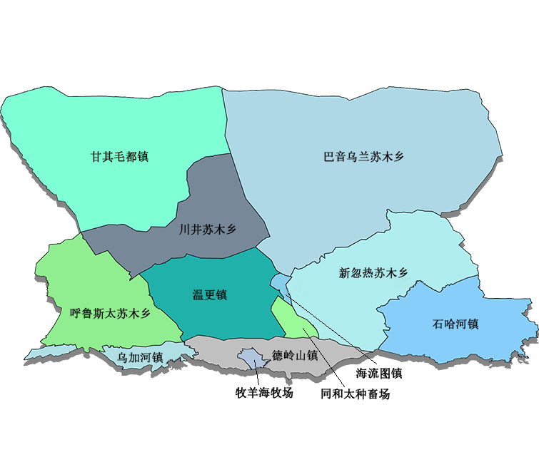 巴彦淖尔市乌拉特后旗位于内蒙古自治区西北部,北纬40°41′30″~42°21′40″,东经105°8′20″~107°38′20″。东与乌拉特中旗交界,西与阿拉善左旗毗邻,南与杭锦后旗、磴口县相连,北与蒙古国接壤,土地总面积2.5万平方千米,边境线长195.25千米,是内蒙古自治区18个少数民族边境旗县之一。旗境内阴山山脉横亘东西,南部是河套平原,北部是丘陵和丘陵高原,形成“南粮、北牧、中矿山”的自然格局。全旗草原面积3644万亩,耕地面积19.1万亩、基本农田14.4万亩。内蒙古自治区矿产资源丰富的旗(县)之一。已探明的矿产资源有8大类46个品种118处矿点。旗辖3个镇、3个苏木,52个嘎查村、19个居民委员会。2023年,地区生产总值1130589.0万元,按可比价计算,同比增长3.5%。其中,第一产业73109.0万元,同比增长13.2%;第二产业870155.0万元,同比增长2.3%;第三产业187325.0万元,同比增长4%。