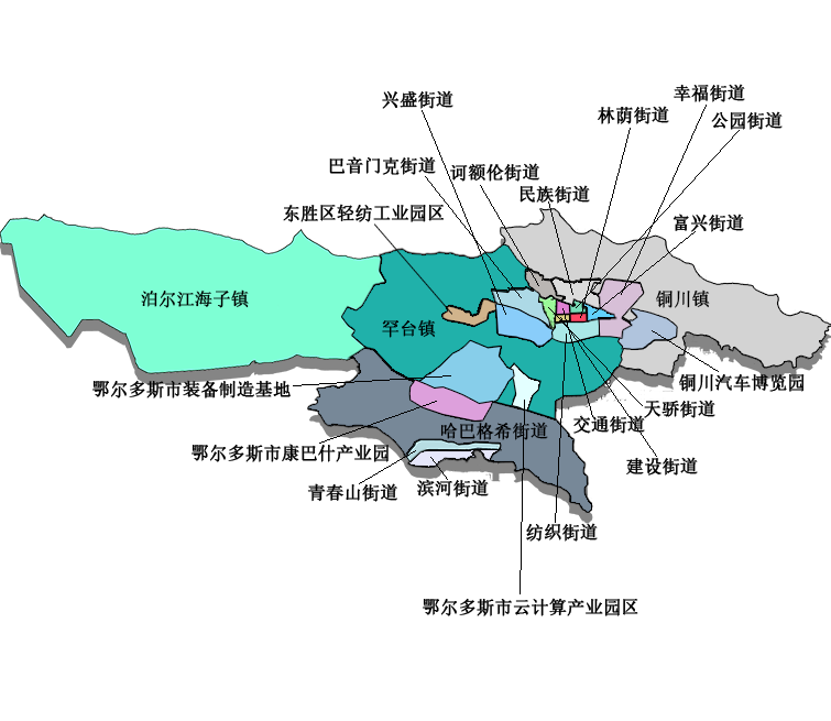 东胜区位于内蒙古自治区鄂尔多斯市中部偏东,是鄂尔多斯市经济、科技、文化、金融、交通和信息中心之一。东胜区境内煤炭资源储量约638.061亿吨,煤层厚,埋藏浅,宜于斜井或平洞开采。森林总面积64251.52公顷,森林覆盖率29.81%。总面积2160平方千米,辖3个镇、12个街道办事处、3个开发区。2023年,地区生产总值10305051.0万元,按可比价计算,同比增长11%。其中,第一产业23955.0万元,同比增长6.4%;第二产业4515903.0万元,同比增长10%;第三产业5765193.0万元,同比增长11.6%。