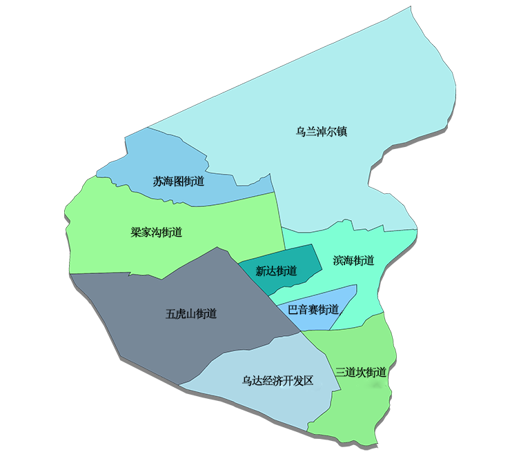 乌达区位于内蒙古西部乌海市境内西南部,东临黄河,与海勃湾区、海南区隔河相望。西靠贺兰山脉北段,西、北与阿拉善盟接壤,南与宁夏石嘴山市毗邻。区辖地南北长约21.5公里,东西宽约16.4公里,总面积219.716平方千米(1999年划界后)。辖1个镇、7个办事处、22个社区。2021年,常住总人口12.24万人,比上年减少200人,居住着汉族、蒙古族、回族、满族等34个民族。2023年,地区生产总值1770270.0万元,按可比价计算,同比增长5.9%。其中,第一产业13033.0万元,同比增长3.9%;第二产业1274660.0万元,同比增长5%;第三产业482578.0万元,同比增长8.2%。