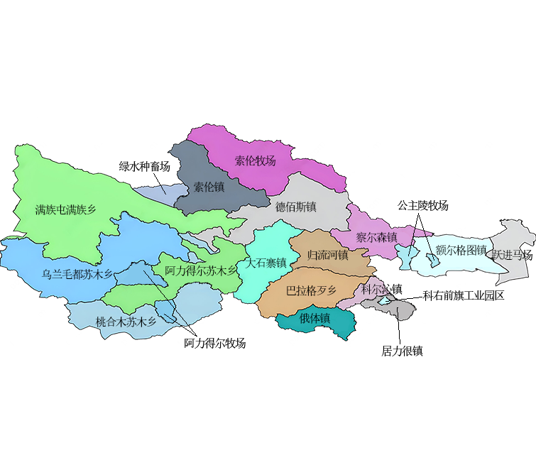 科尔沁右翼前旗(以下简称“科右前旗”)位于内蒙古自治区东北部,大兴安岭南麓,兴安盟中西部。总面积16985.3平方千米。旗境东与兴安盟扎赉特旗相连,南与吉林省洮南市、兴安盟乌兰浩特市、突泉县、科尔沁右翼中旗相接,西与锡林郭勒盟东乌珠穆沁旗、蒙古国毗邻,北与兴安盟阿尔山市、扎赉特旗接壤。中蒙边界线长32.50千米。旗辖3个苏木,满族屯满族乡和巴日嘎斯台2个乡,科尔沁、额尔格图、察尔森、归流河、大石寨、德伯斯、索伦、居力很、俄体9个镇,绿水种畜繁育中心。科右前旗政府驻地科尔沁镇。2023年,地区生产总值1348732.0万元,按可比价计算,同比增长5.7%。其中,第一产业767635.0万元,同比增长4.6%;第二产业210332.0万元,同比增长14.7%;第三产业370765.0万元,同比增长3.2%。